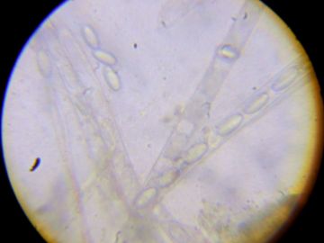 Výtrusy elipsoidní, 20-22 x 10-11 µm, bohužel zatím nemám obarvovadla, ale není vyloučena jemná bradavčitost.