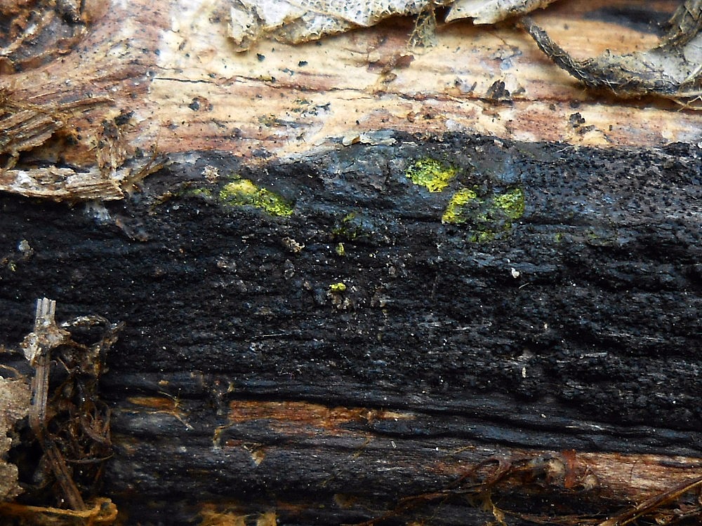 Bradavkatka žlutozelená (Eutypa flavovirens), houba význačná žlutozelenou "dužninou" (Opravte mě prosím a nahoďte příhodnější výraz).