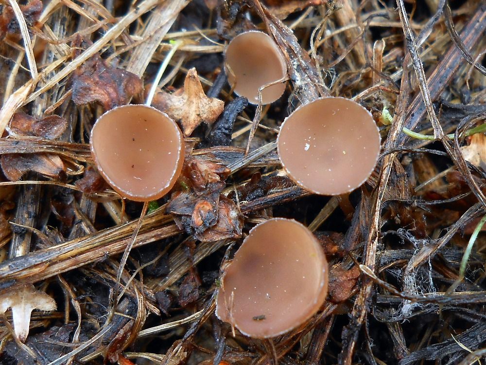 Asi mám další lokalitu na jehnědky jívové (Ciboria caucus). Bohužel, aby to nebylo tak jednoduché, na místě byla ještě bříza a poblíž nechyběla ani olše (líska zde ovšem nebyla). Zkoušel jsem mikroskopovat a mikroskopické znaky se docela dobře shodují se znaky minulé jehnědky jívové, takže spíš víc věřím jí, ale určitě si to netroufám s jistotou tvrdit.