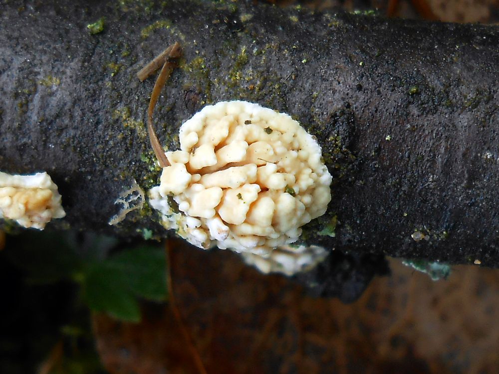 Já bych se též obracel ke kornatci okrouhlému, už jsem jednou podobné plodnice viděl. Přikládám foto pro porovnání.