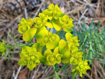 Patrik má možná pravdu, že duben a květen není jenom smržový. Na pryšci chvojce parazituje jedna rez, a to rez hrachová (Uromyces pisi-sativi), která tuto rostlinu změní do skoro nepoznatelného stavu.