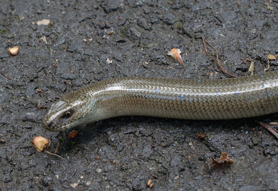 Já dneska velká houbová bída, ale cestou zpátky, ležel slepýš, jako by nebyl. Jen jsem se nachystal, hnul se na druhou stranu. Tak jsme trošku tancovali, líp mi to nešlo, asi jako Honzíkovi