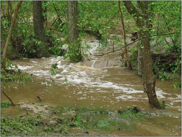 ... i tam jak jsme chodili valí potok jak hrom. Chřapáči i kosmatky jsou pod vodou.