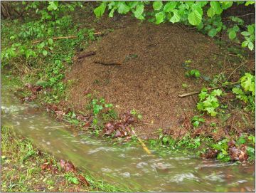 ... mraveniště si postavili u běžně suché strouhy, teď mají vodu "ve sklepě"