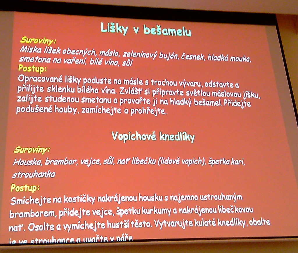 Stran Receptáře. . . . moje představa ohledně "Gastronautů", jak to ftipně a výstižně nazval Kápo, by byla třeba taková, že by člověk vlezl do atlasu a tam by se rovnou podíval, který konkrétní jídla by se daly z tý který konkrétní houbelec stvořit, případně by tam byla navíc i rovnou nějak kvantifikovaná časová náročnost přípravy. . něco jako škála začínající pro "Neschopy do půl hodky". . . . . až po "Pokročilý kuchař, cca 2 hodiny"
