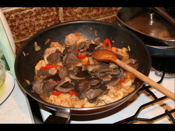 Špek nakrájíme na kostičky a na rozpálené pánvi ho necháme zesklovatět. Pak přidáme pokrájené houby a necháme z nich vydusit všechnu vodu. Poté přidáme vejce, sůl, pepř a směs mícháme až dosáhneme vhodné konzistence.