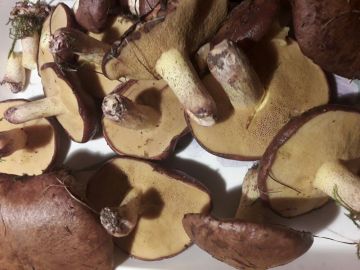 - Vlevo: Klouzek sličný (Suillus grevillei