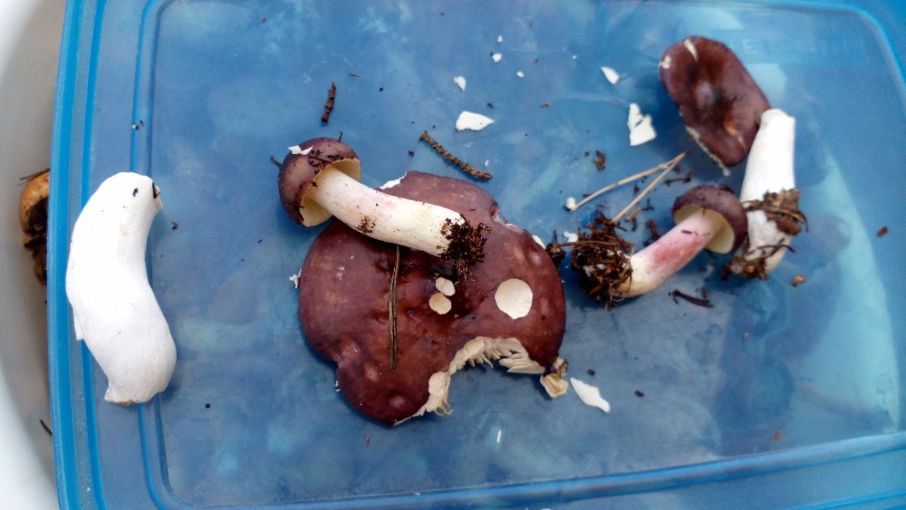 1) Holubinka to některá je, ale těžko říct, co to přesně je za druh. Holubinky jsou poměrně obtížným rodem na určování a bez důkladného studia makroskopických (někdy i mikroskopických) znaků se až na výjimky spolehlivě určit nedají. U holubinek si však snadno ověříte jedlost plodnice tím, že ji ochutnáte (a samozřejmě potom zase vyplivnete) a v případě, že nebude palčivá či hořká, jedlá je.