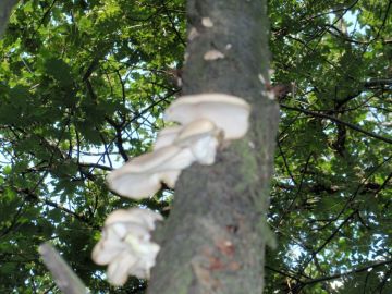 Na fotografii není zřejmé, jakou ta houba má strukturu hymenoforu (zda má lupeny, rourky . . . ), což dost ztěžuje určení, ale pokud to mělo lupeny, mohla by to být hlíva plicní.
