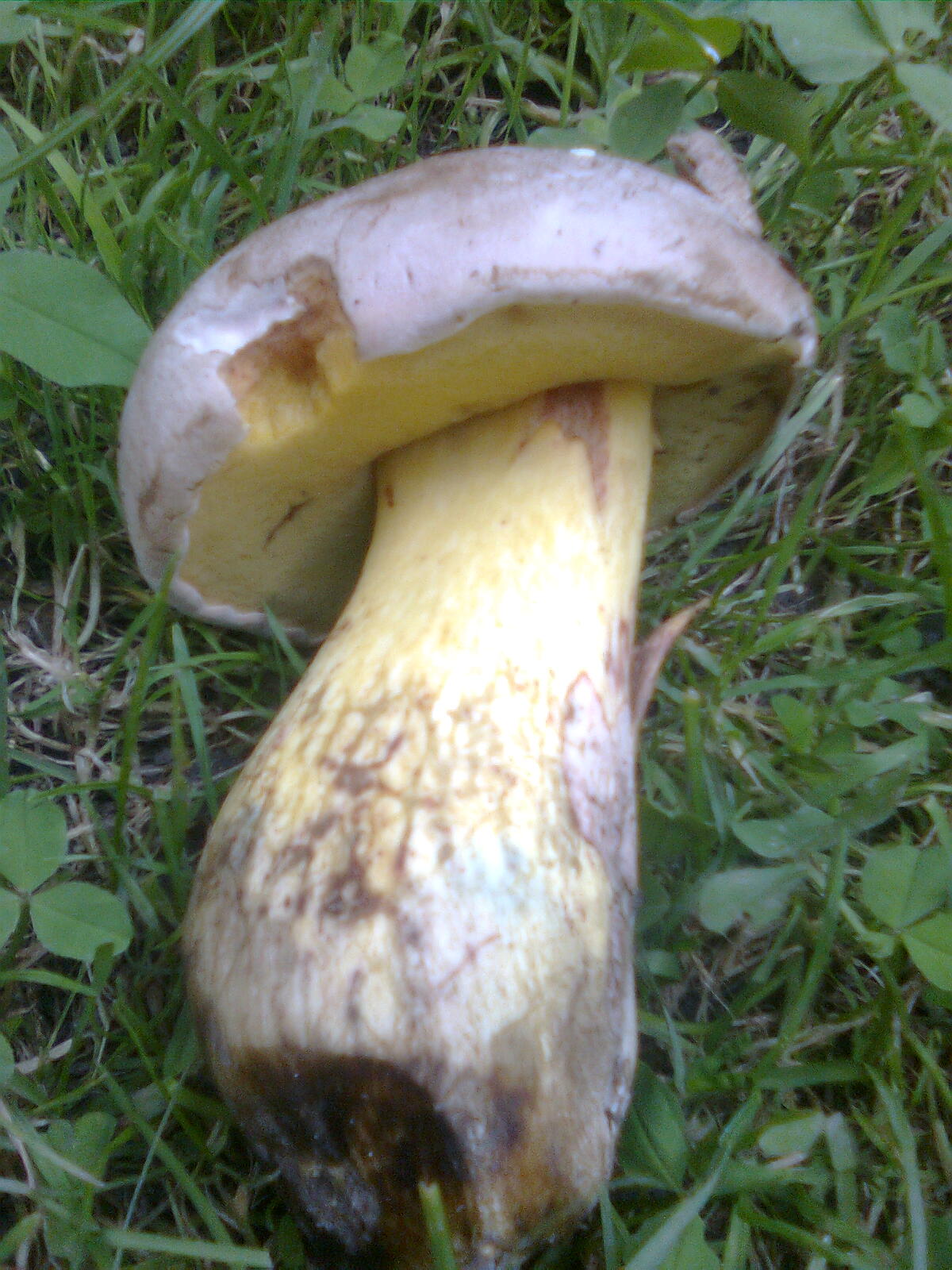 Prosím o určení. Hřib má celou nohu sírově žlutou, to samé pod kloboukem. Když se nařizne, tak zrůžový a místa po otlaku zmodrají. Našla jsem ho v borovém lese ukrytého v mechu. Nevíte, co to může být?