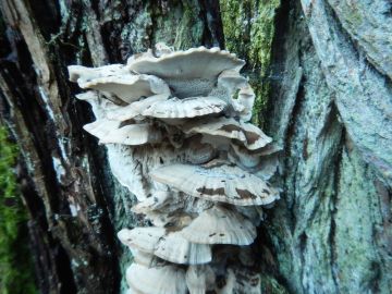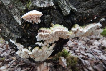 Tato houba rostla na padlém kmeni listnáče poblíž vodního toku.