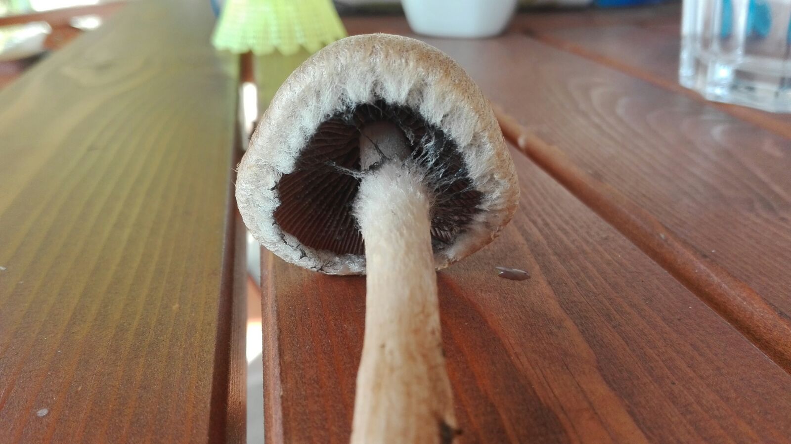 Nejspíše helmovka tuhonohá (Mycena galericulata).