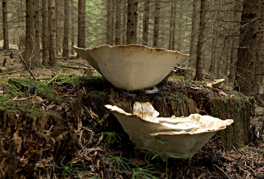 Jo, jak vysoko na tom kmeni? Takhle mi to připadá, že roste na kořenových nábězích - jestli v okolí jsou jehličnany, tam by tam klidně mohlo být napadané jehličí.