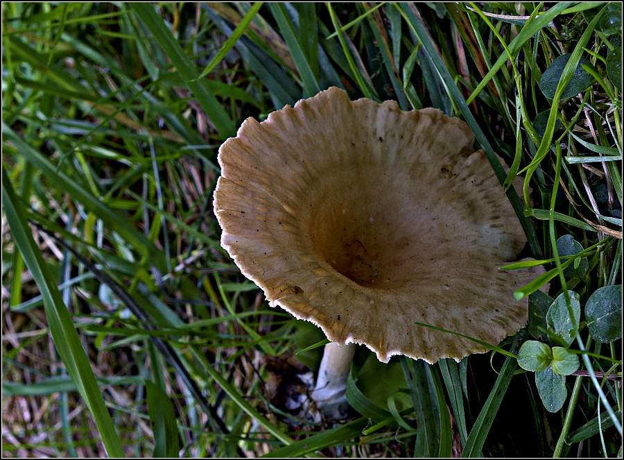 Pokud by to mělo kyjovitý třeň, tak by to mohla být strmělka kyjonohá, jinak to může být strmělka nálevkovitá. Strmělka to je každopádně.