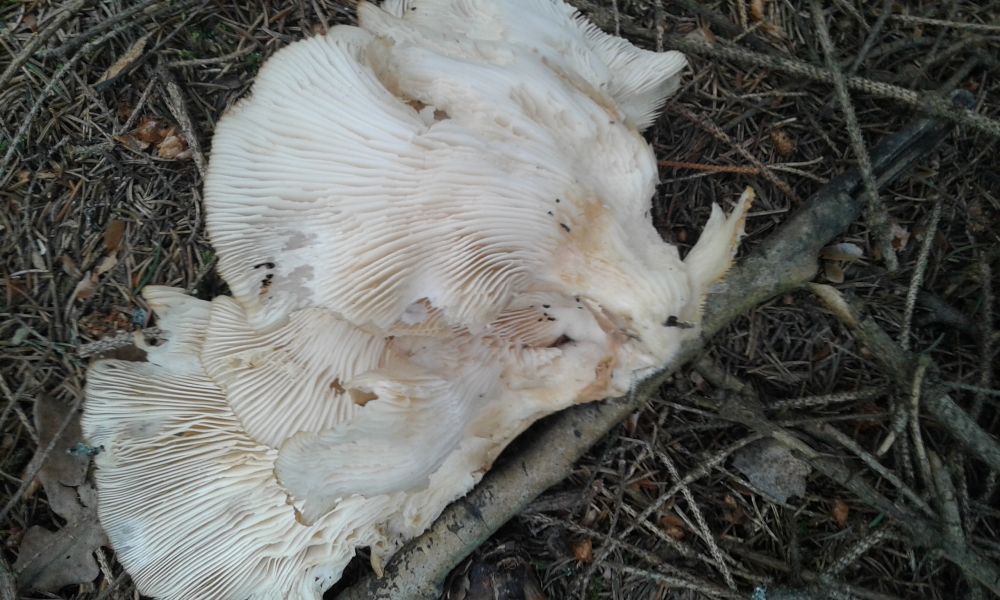 ), nalezeno v čisté jedlině (hojně ve dvou různých lesích), plodnice vykukují z jehličí a jsou obaleny myceliem.