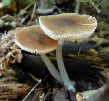 šla by prosím určit tato štítovka ? Rostla ze země (jestli z nějakého dřeva schovaného pod povrchem půdy, to si netroufám tvrdit). Byl zde dub, vrba, olše, javor. Klobouk byl v průměru, odhaduji, asi 3 cm. Výtrusy elipsoidní, naměřil jsem 7-8 x 5-6 μm.
