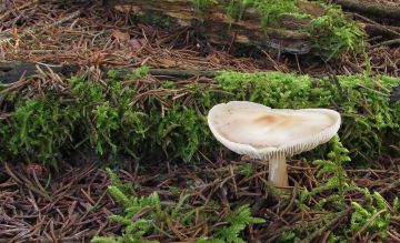 Ještě mě také napadá mechovka obecná. Doporučuji nefotit jenom klobouk, protože to u většiny stopkovýtrusých hub na určení nestačí.