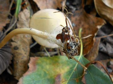 Nevíte prosím, co je toto za houbu ? Rostla v trávě u silnice (poblíž byly lísky, jiných stromů až tolik ne). Na bázi třeně měla nějaká houbová vlákna (viz. obrázek 4). Byly jich tam skupiny a v různých podobách: