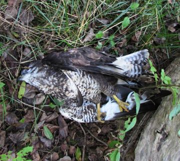 Přeposlal jsem fotku zkušenému ornitologovi a toto mi odepsal: Je to ad. samec jestřába, ale protože chybí možnost porovnat velikost, není zcela vyloučena ani samice ad. krahujce. Liší se téměř jen velikostí. Podle poměru krátkého rýdováku na 95% jestřáb.