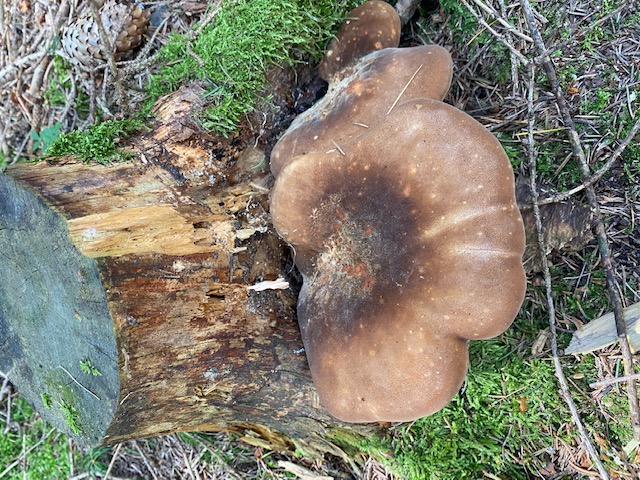 Nejedná se o hlívu, je to čechratice černohuňatá (Tapinella atrotomentosa) a je právě hodně běžná v jehličnatých lesích kolem pařezů.