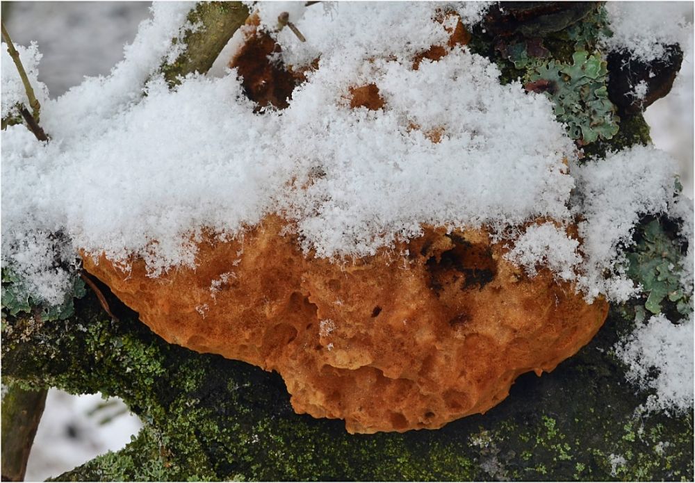 Tahle fotka na mě působí zmatečně, jak se to z půlky schované pod sněhem. Nevím ani, jestli to, co vidím, je klobouk nebo hymenium.