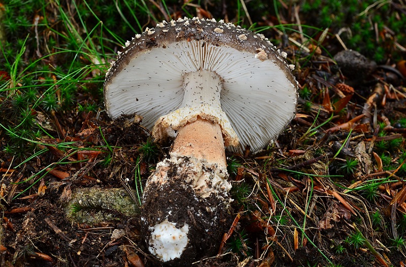 Muchomůrka-možná dva druhy, obě nafoceny v smrkovo jedlovém lese, barva dužniny bílá, neměnná. U té větší od klobouku až po okraj prstenu zřetelné rýhování. Bohužel jsem nečuchal