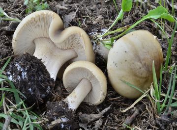 Tu "největší" plodnici bych takhle z fotky určil jako šedivku, u těch "menších" v levém horním a pravém dolním rohu bych zvážil růžovku.