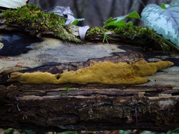 Tento povlak, snad pevník, rostl na ležícím kmenu blíže neurčeného listnáče, straně přivrácené k zemi. Smíšený listnatý les (vrby, břízy, osiky, lísky, duby).