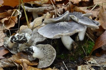Prosím o určení. Nějaké čirůvky? Veliké, až obrovské, masité plodnice. Největší klobouky až 15cm, nejsilnější třeně až 6 cm v průměru. Dužnina na řezu bílá, ve třeni vatovitá. Velmi příjemná, možná skoro ovocná vůně (podobně jako čirůvka kosatcová). Rostou na starším zarostlém kompostu, myslela jsem po najití, že by to mohly být dvoubarvé, ale na třeni ani náznak fialové. U mladých plodnic jsou třeně světlé, skoro bílé, u starších béžové a tmavší. A klobouky víc do šeda, než do hněda. Vlastně dost připomínaly strmělky mlženky, ale jsou víc k sobě namačkané, rostou skoro trsovitě- na kompostu tvoří kola vždy o cca 20 plodnicích, ještě mohutnější plodnice, než mívají mlženky a hlavně voní, narozdíl od mlženek, které mi osobně dost páchnou. A vlastně i růst na tom kompostu asi mlženkám neodpovídá. Fakt krásné houby, tak by mě zajímalo, co to je