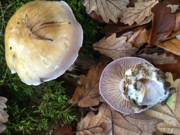 Prosím o určení houby na přiloženém obrázku, našla jsem ji včera ve smíšeném lese. Odlomený třeň houby vykazoval slabě fialový nádech. Děkuji.