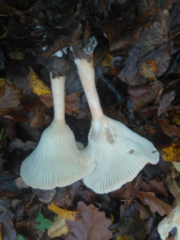 C. geotropa by měla výrazná středový hrbolek na klobouku, to tady nevidím. Řekl bych, že by to mohla být strmělka nálevkovitá (Clitocybe gibba) nebo přinejmenším něco ze skupiny kolem tohohle druhu.