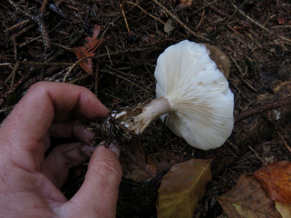 Ahoj, já jsem tipoval Tricholomu. Napadla mě ta stiparophyllum, jak říká Jirka, ale přijde mi netypická (přinejmenším s tím vroubkovaným okrajem jsem se u ní ještě nesetkal). Takže netroufám si říct, co to přesně je.