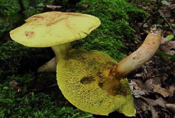 Zkus se podívat na hřib meruňkový (Rheubarbariboletus armeniacus). Má i žlutou formu, která je teda ale velice vzácná.