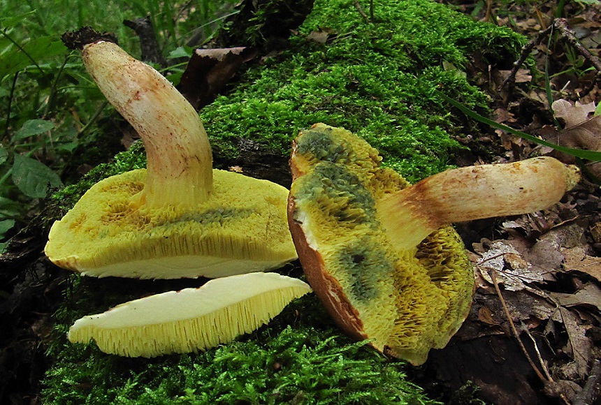 je z fotek možné rozpoznat, zda se nejedná o hřib koloděj červený (Suillellus luridus var. rubriceps)? Jedna vyvrácená stará plodnice. . .