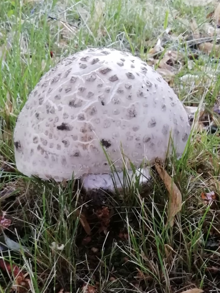 Z fotky to vypadá na muchomůrka šiškovitou (Amanita strobiliformis).