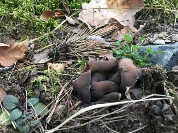 Ušíčko určitě ne. Pravděpodobně by to mohl být chřapáč běločerný (Helvella leucomelaena).