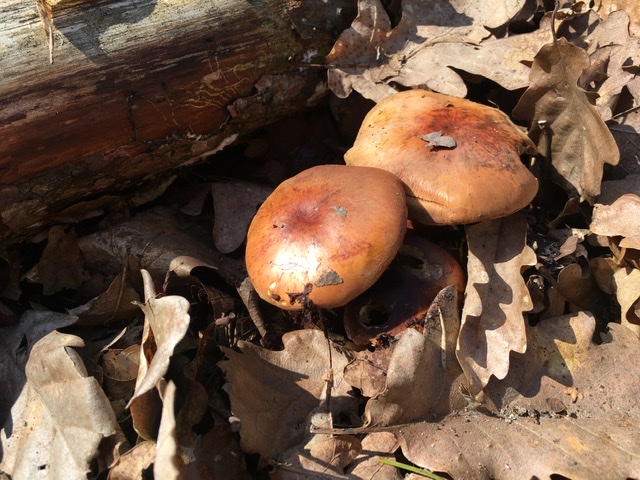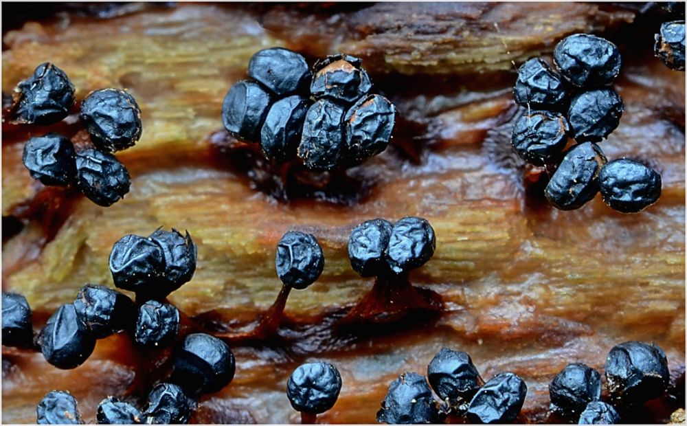 V dubině na déle ležícím kmenu se našla skupina hlenek.