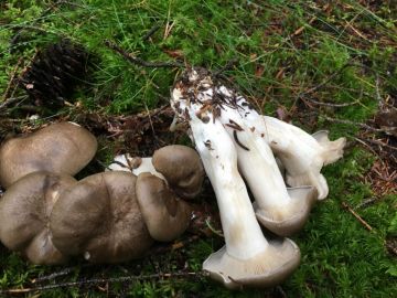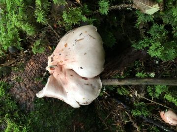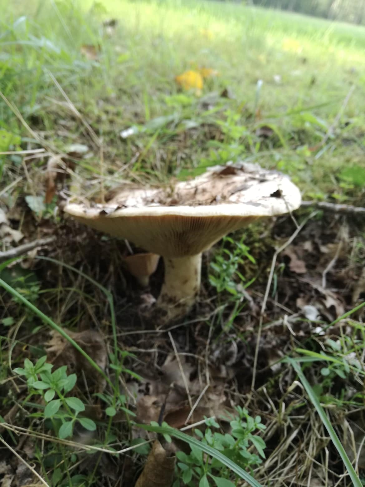 Co je to za houbu? Je poměrně obrovská (průměr klobouku asi 20cm), světlé zbarvení může být ovlivněno tím, že byla částečně pokryta listím.