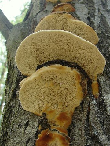Výš na kmeni jsem objevil další plodnice. Bu´d tam ještě nebyly, nebo jsem si jich minule nevšiml.