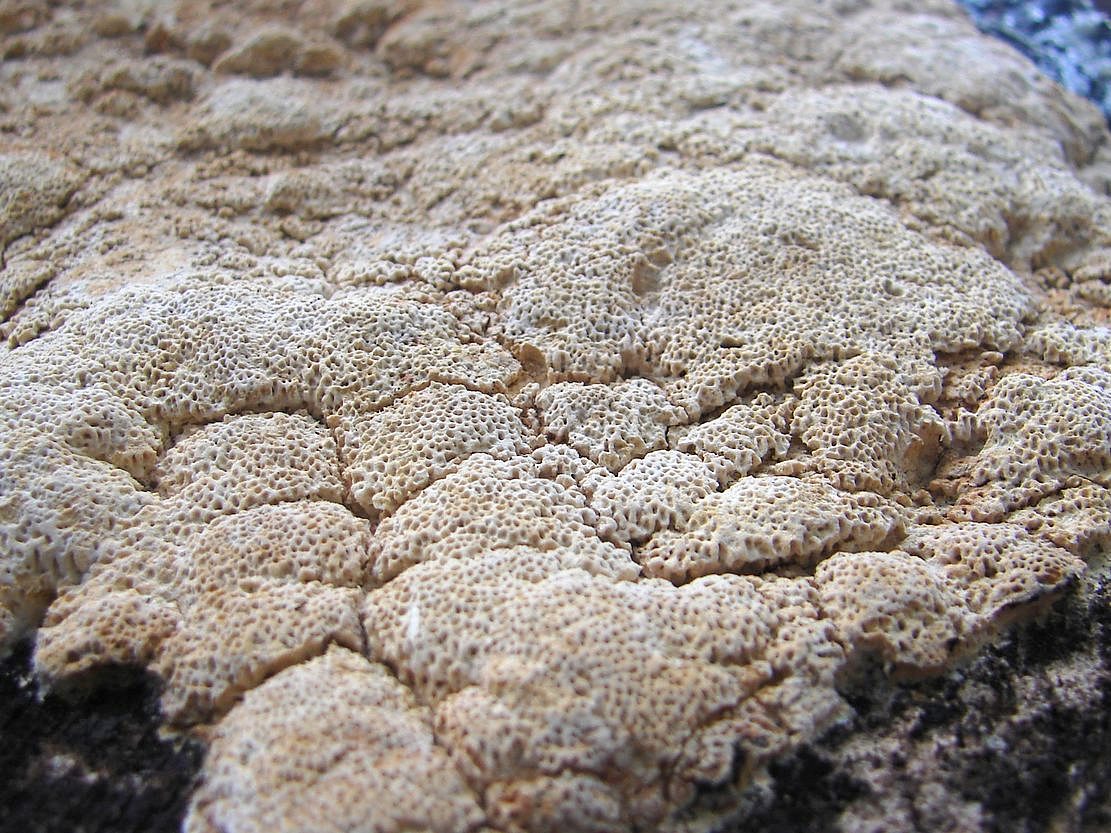 I tady měl Aleš pravdu, když tipoval vrbu. Je to vrba jíva. A ten největší klobouček měl v průměru asi 9 cm, on ten kmen není tak silný. Hanýžko, tentokrát sem hobu očichal a určitě nepáchla. Voněla tak nějak neutrálně houbově. Udělal jsem ještě detail pórů.