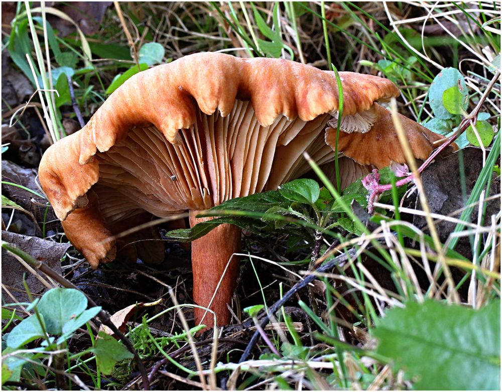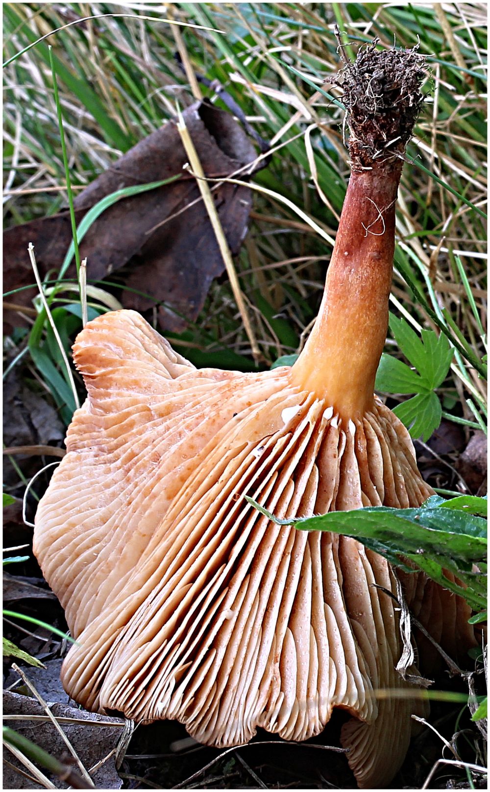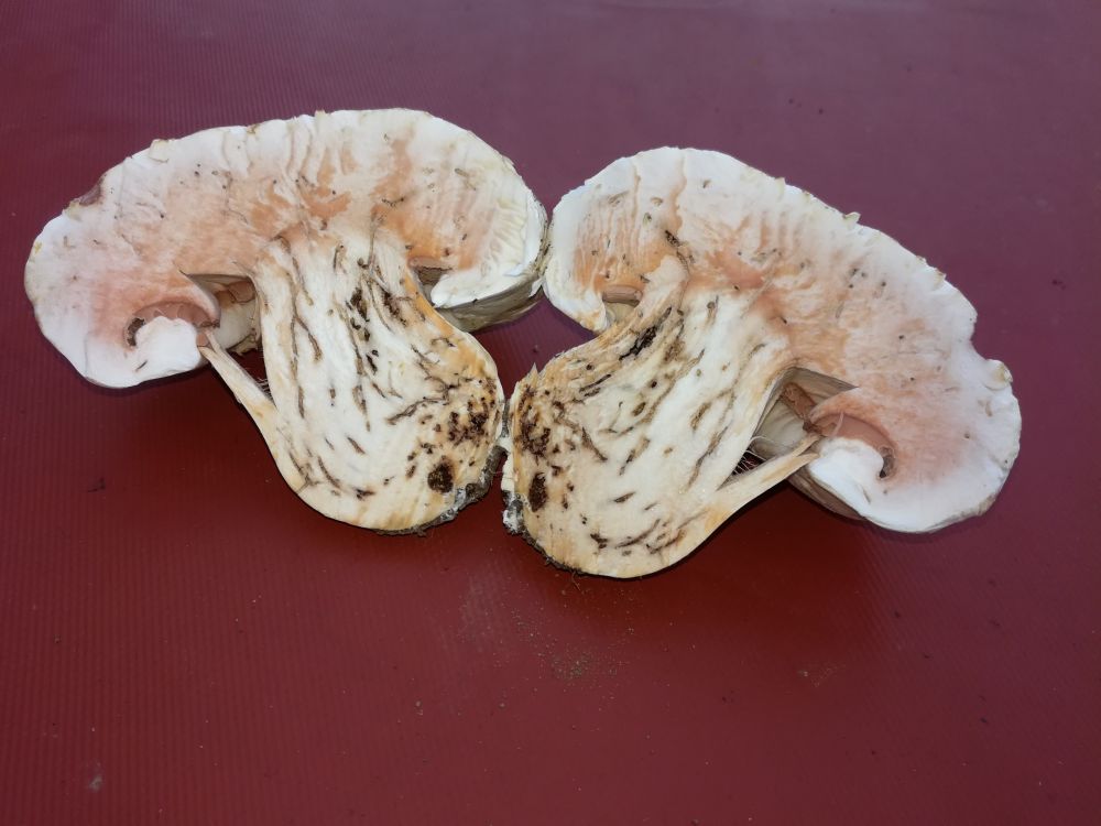 Na zahradě mi roste více druhů hub většinu jich neznám, tohle mi virostlo tento týden pod modřínem. Myslel jsem že to je píchavka, ale když jsem to vydloubl tak jsem zjistil, že to bude něco jiného, průměr klobouku cca 15cm vůně dost výrazná .