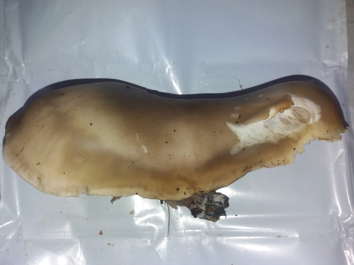 Dobrý den, prosím o určení, nalezeno ve vlhkém listnatém lese, klobouk 6cm, ve středu výrazně promáčklý, hnědý,