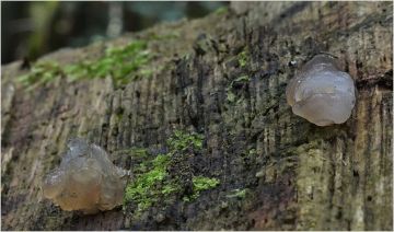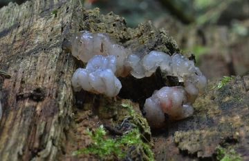Na ležícím kmenu smrku v pokročilém stupni rozkladu tento rosolovitý útvar.