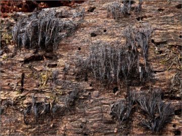 Toto bych tipoval na z nedostatku vláhy seschlý mechorost. Zdá se mi, že jsou na snímku vidět seschlé lodyžní lístky. Vzhledem mi to trochu připomíná rod Dicranum, který jsem ale takto samostatně na dřevě růst neviděl.