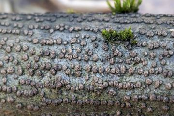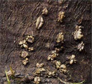 Něco takového jsem myslím taky viděla a byla to tvrdá stromata nějakého pyrenomycetu. Možná mladá a proto míň vybarvená?? Netuším. Ale nepřekvapilo by mě, kdyby to byla korovitka.