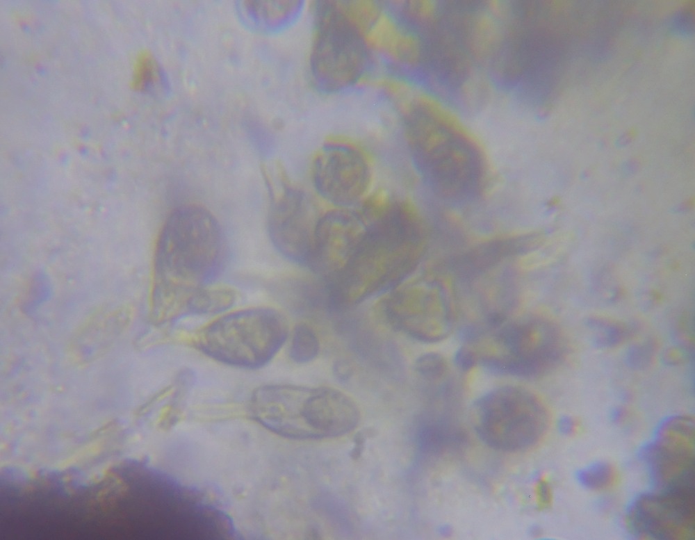 Nevím jistě, jestli jsou to přímo výtrusy, ale byly to jediné útvary, které jsem pod mikroskopem našel.