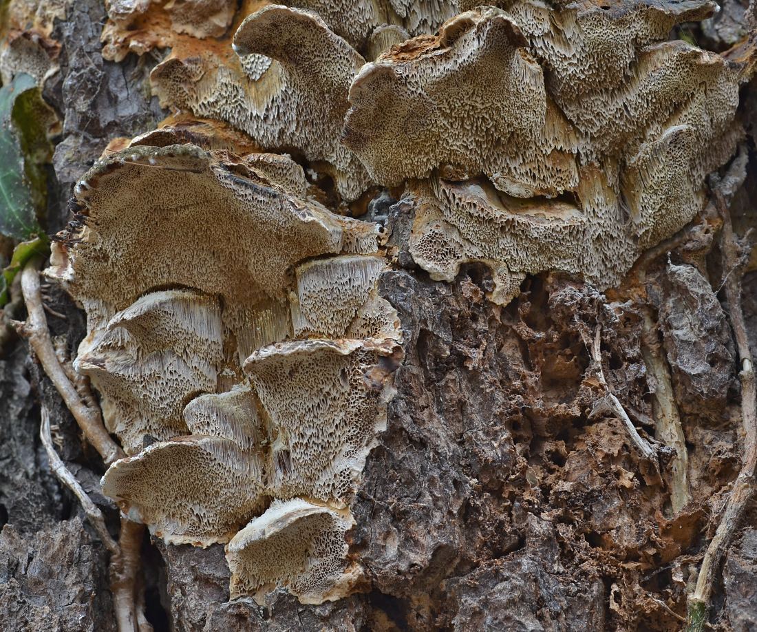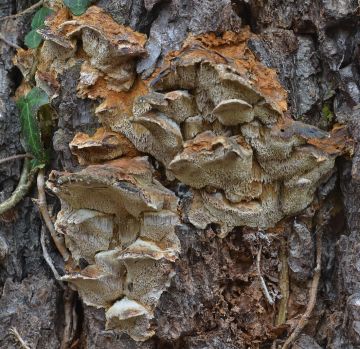Houba rostla mezi kmínky břečťanu na statném kmenu javoru. Nějaký rezavec?