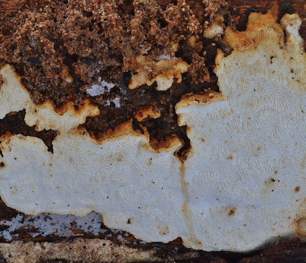 Prosím o pomoc určením tohoto organismu. Pozorováno na zpracovaném dřevě smrku. Vyfoceno 2. 2. 2018.