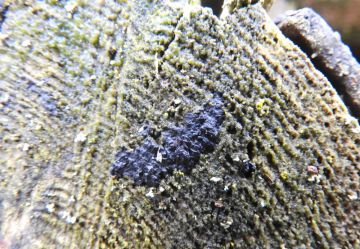 Pozorováno na kůře suché větve listnatého stromu. Vyfoceno 2. 2. 2018.