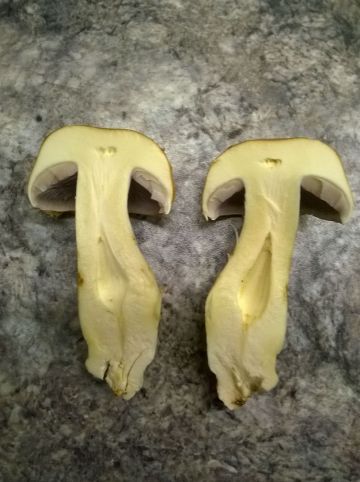 Dobrý den všem, pravidelně nalézám následující hřiby. Rostou v dubovém lese, v teplém období Červenec / Srpen. Oblast: CHKO Moravský kras tzn. vapenatá půda. Rourky zespoda žluté. Nechávám je v lese.
